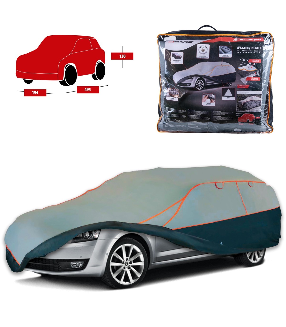 Autoplachta proti krupobitiu – vagón. Spoľahlivá ochrana vášho vozidla pred krúpou, škrabancami a poveternostnými vplyvmi. Jednoduché nasadenie a skladovanie.