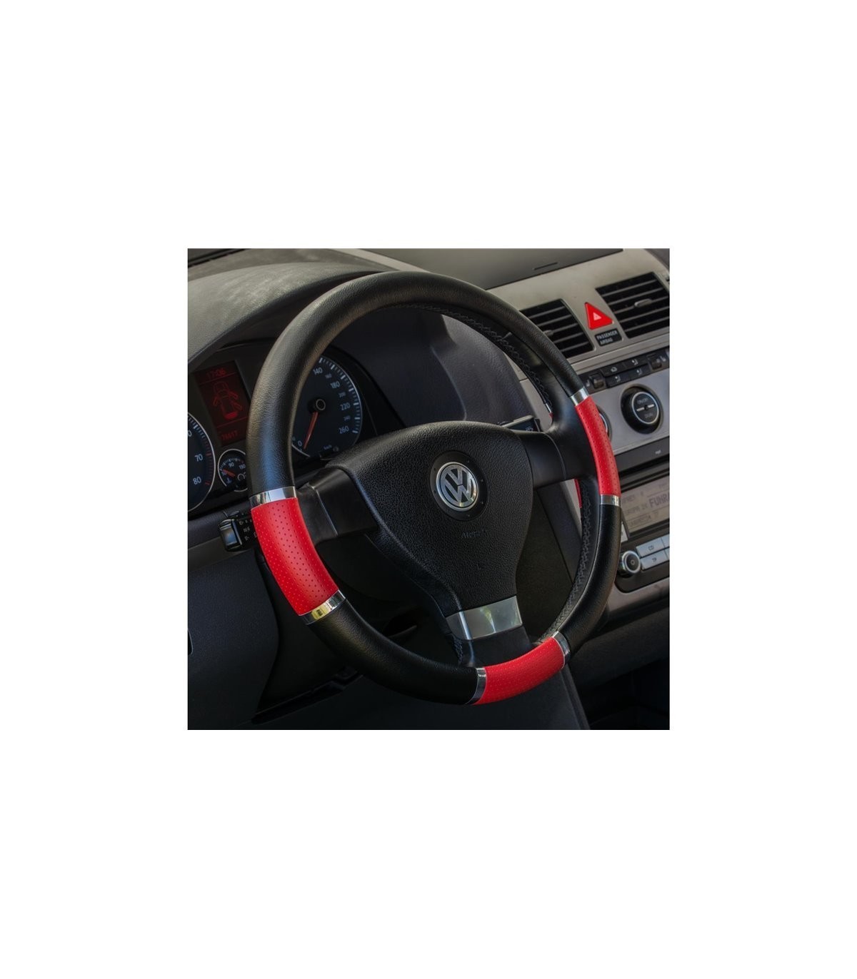 Univerzálny poťah na volant automobilu v elegantnom čierno-červenom farebnom prevedení je určený na ochranu volantu pred bežným opotrebovaním a zabraňuje kĺzaniu rúk z volantu. Je vyrobený z kvalitného materiálu, ktorý je veľmi príjemný na dotyk a tým zvyšuje váš komfort počas jazdy. Poťah sa jednoducho udržuje v čistote a vyznačuje sa tiež nenáročnou montážou. Poťah je možné použiť na volanty s priemerom 37 až 39 centimetrov.