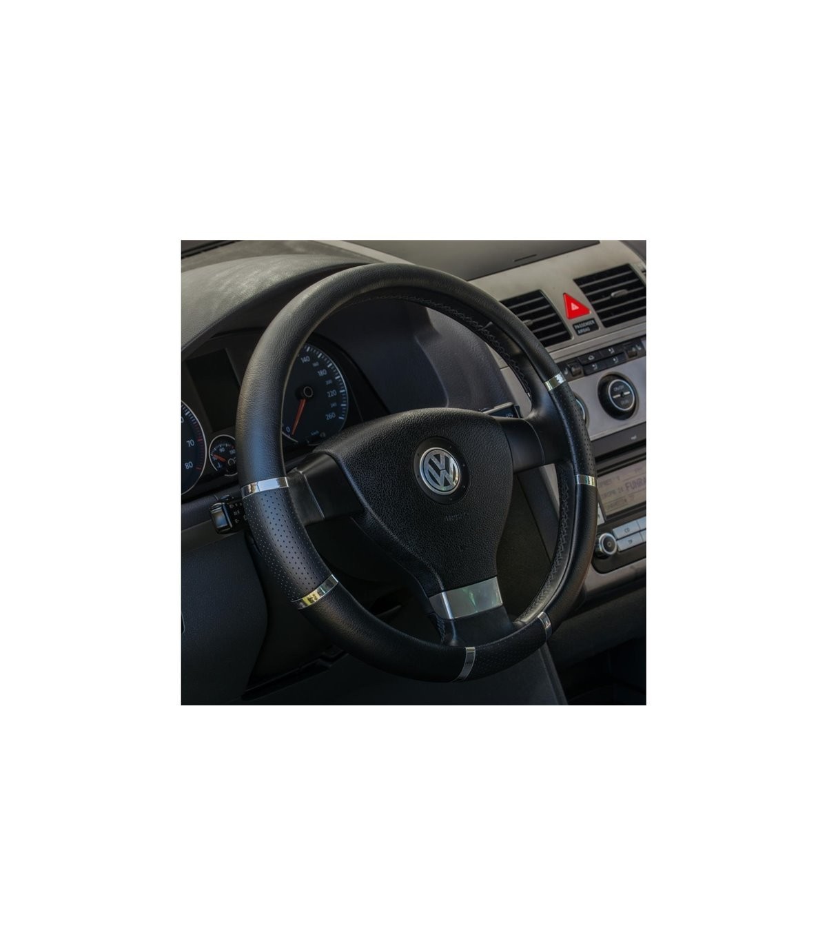 Univerzálny poťah na volant automobilu v elegantnom čiernom farebnom prevedení je určený na ochranu volantu pred bežným opotrebovaním a zabraňuje kĺzaniu rúk z volantu. Je vyrobený z kvalitného materiálu, ktorý je veľmi príjemný na dotyk a tým zvyšuje váš komfort počas jazdy. Poťah sa jednoducho udržuje v čistote a vyznačuje sa tiež nenáročnou montážou. Poťah je možné použiť na volanty s priemerom 37 až 39 centimetrov.