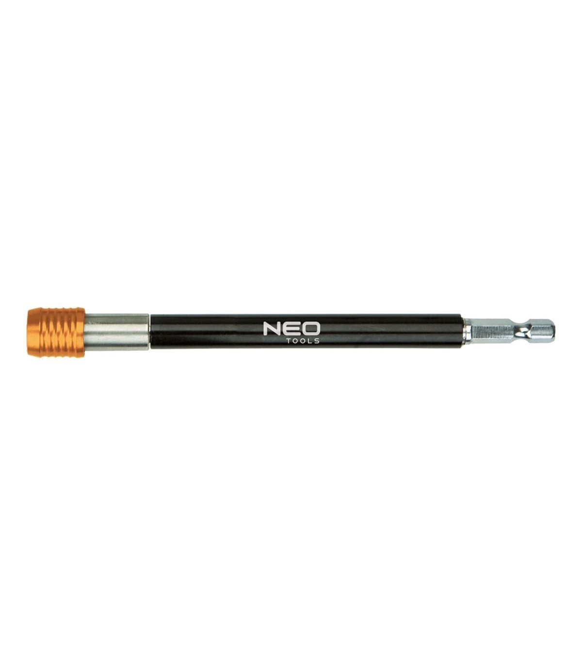 NEO Upínadlo na nástavce 1/4, dĺžka: 150 mm, magnetické. Produkt je vyrobený z odolnej chróm-vanádiovej ocele. Kvalita nástroja je potvrdená certifikátom TÜV a zárukou výrobcu na 25 rokov. Značka NEO spĺňa očakávania profesionálov.