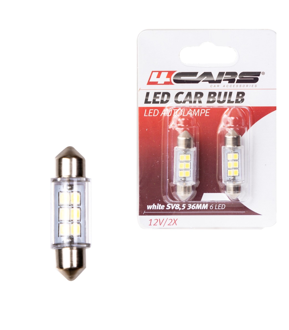 Energeticky úsporná LED žiarovka 6LED 12V SV8,5 36 mm, vhodná pre interiérové osvetlenie a malé automobilové aplikácie. Jasné a spoľahlivé svetlo s dlhou životnosťou.