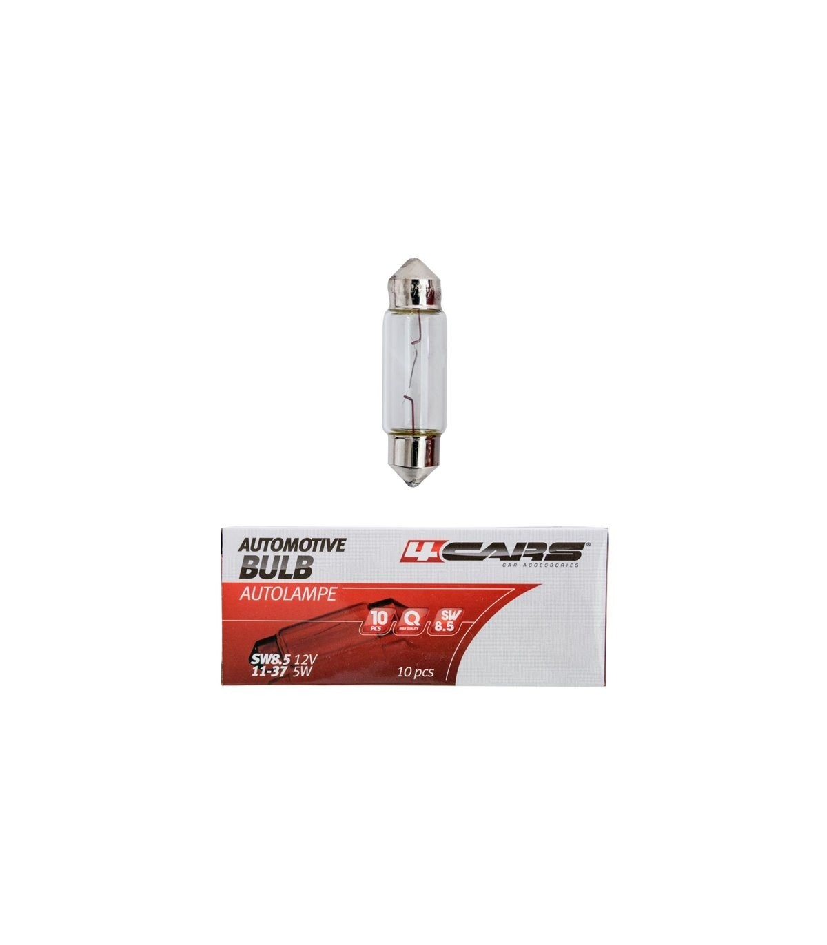 Žiarovka SW8.5 12V 5W 11×37 je spoľahlivé riešenie pre osvetlenie vášho vozidla. Vďaka univerzálnemu použitiu je vhodná do interiéru, batožinového priestoru, osvetlenia prístrojovej dosky či evidenčného čísla. Balenie obsahuje 10 kusov, čo zaručuje praktickú zásobu pre dlhodobé využitie.